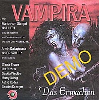 ![]() ![]() | VAMPIRA 3 BESESSEN Lübbe Audio (im Auftrag produziert von floff) ISBN 978-3-7857-3222-9 Spielzeit: ca. 64 min Pater Lorrimer hatte Angst. Schreckliche Angst. Das Böse war schlau. Das Böse konnte Ihn schwankend in seinem Glauben machen. Er war noch nie einer Frau mit dieser Ausstrahlung begegnet ...